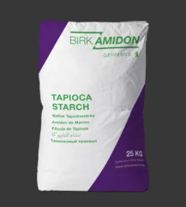 Tapioca starch is used widely as a thickener and stabiliser thanks to its excellent properties. Tapioca starch is used in the production of meat products, noodles, snacks and baked goods as well as to bind sauces and soups. Tapioca starch is more similar to potato starch than any other native starch and can therefore be used to substitute potato starch. Tapioca starch is naturally gluten-free.