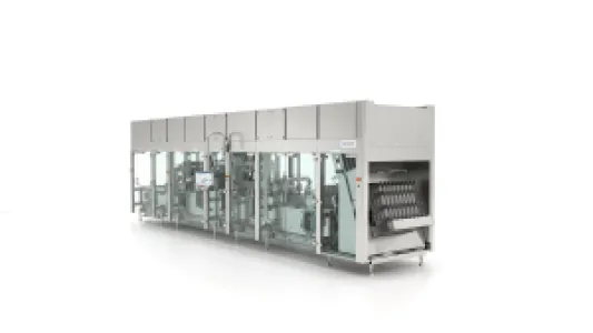 The Ampack FCL fills a wide range of liquid and viscous foods into preformed cups (e.g. yogurt, desserts, dips). Available in the hygienic versions Ultra-Clean and Aseptic, the machine is an ideal solution for foods that require greater protection and a longer shelf life. Depending on the desired output quantity and packaging size, the FCL can be configured as a single-indexing, double-indexing or format-flexible version with 6 – 12 lanes and an output rate of up to 60,000 cups per hour.