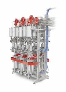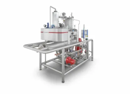 The JELLYSTAR® 2014 cooking machine is ideally suited for processing all kinds of jellifying agents. The products are processed very gently and show a high quality in the finished product. Its extremely compact design, specifically also designed for large through-puts, results in a minimal space requirement compared to conventional coil cookers. Small temperature differences can be realized by the high turbulence on the product side, which is a requirement for a low steam pressure demand.