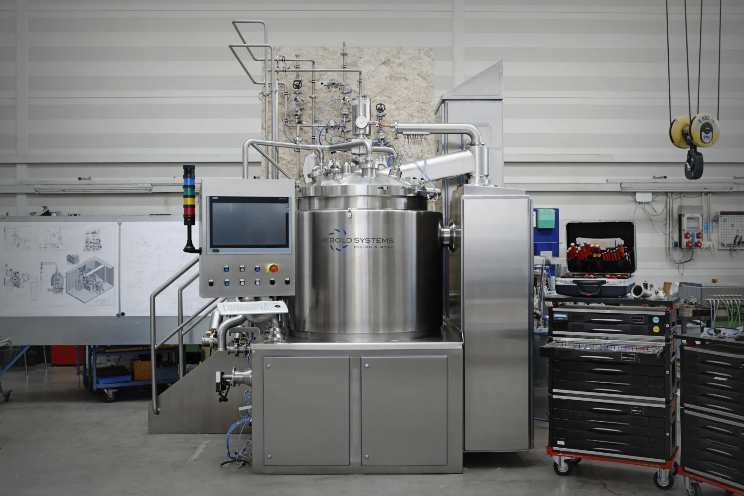 Our turnkey process plants are sized from 5 to 10,000 liters of useable volume. Each mixing system can also be altered to meet your individual requirements. Possible configuration features are e.g., full enclosures, lid-lift-systems, tandem homogenizers, short or long recirculation lines, double jackets for heating or cooling, automated raw material dosing, semi or fully automatic CIP systems, and integral vacuum units. Execution possibilities range from explosion proof (ATEX) to fully automated production (batch control). The implementation and installation are carried out with all necessary peripheral and supply units including platforms and piping.