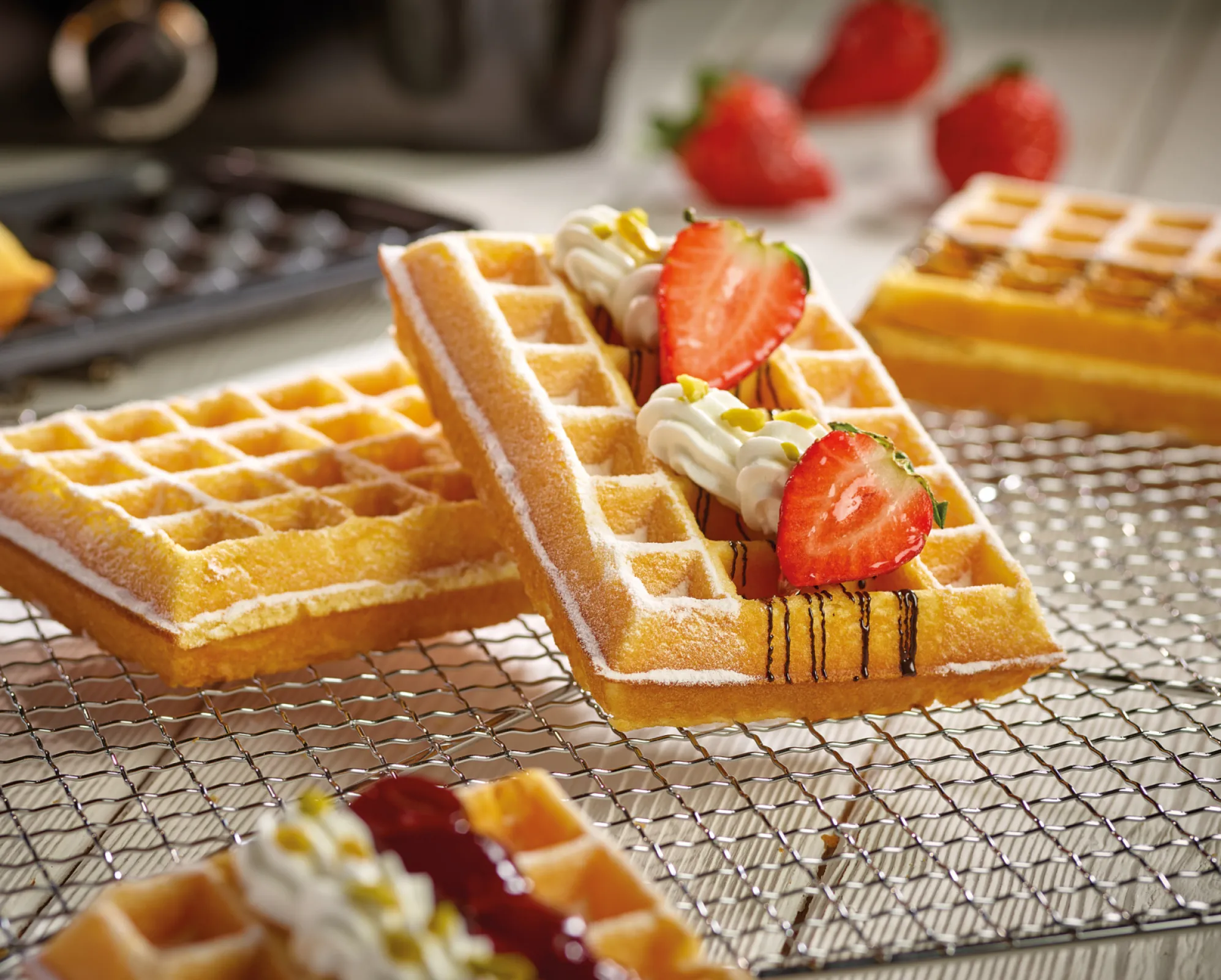 Premix with yoghurt for the preparation of moist slices and other types of Madeira cakes. Without the fruit topping sinking into the batter. No additional eggs required.